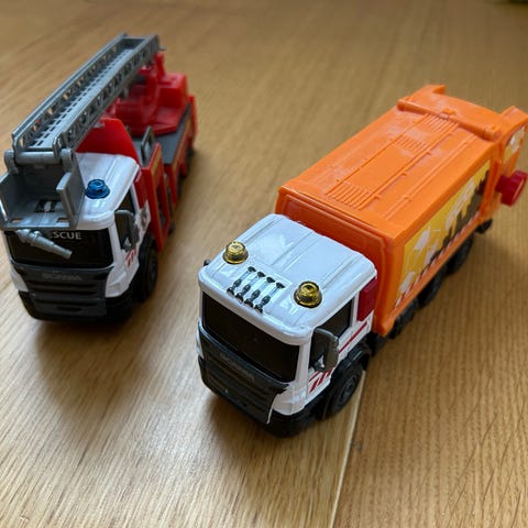 1 stk. renovationsbil - orange, med påskriften RECyCLING-Team. Pris kr. 60,-.