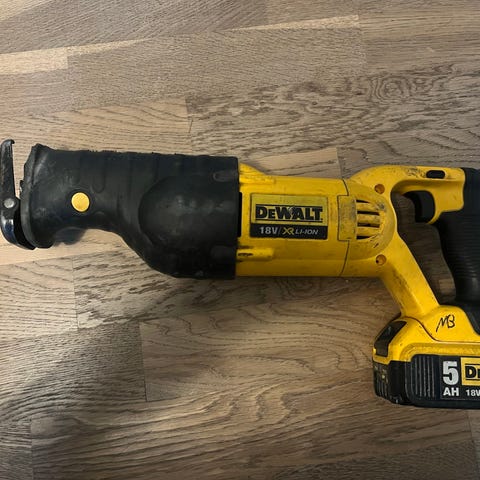 DeWalt DCS382 Akku Bajonetsav med en spænding på 18V og en slaglængde på 28,6 mm. Batteri og oplader medfølger, model DCB115 XR Li-Ion 18V