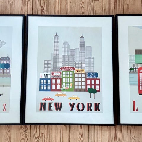 IKEA dekoration med motiv af farverige varmluftsballoner over et landskab. Mål: 100x140 cm