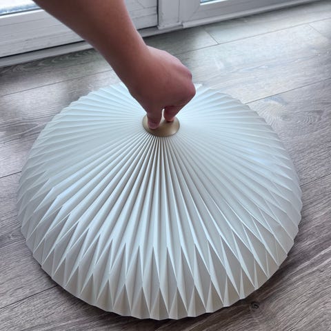 Lampen har det klassiske, foldede papir-design som Le Klint er kendt for – enkelt, elegant og skandinavisk.