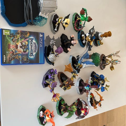 Skylanders Playstation 4 spil inklusive forskellige figurer og tilbehør. Karakterfigurer i forskellige farver og designs samt tilbehør til brug i spillet. Passer til Playstation 4 konsol.