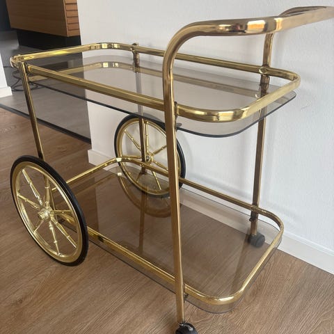 Bar-/serveringsvogn i messing og træ.