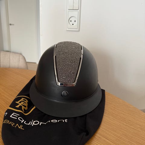 Helt ny ridehjelm, slet ikke brugt. Kasse og pose medfølger.