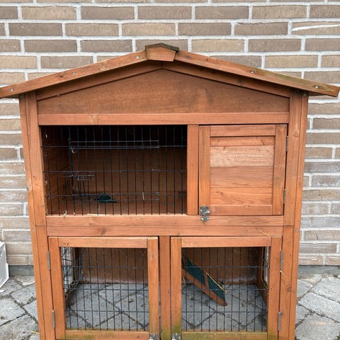 Træ Kaninbur med to etager og løbegård 😊
