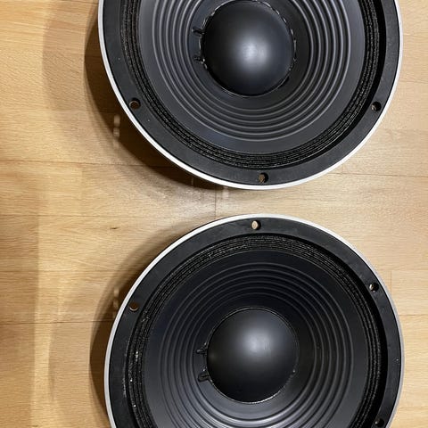 A pair of homemade speakers with discontinued Seas coaxial T17 re coax/tvf coaxial drivers