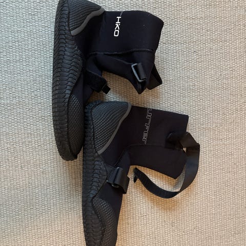 BlueStream neopren kajaksko i sort. Skoene er designet til at give beskyttelse og varme ved vandsport og andre aktiviteter i vand.