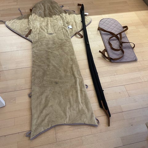 Sovepose til baby i dun fra Dungo. Brugt til 2 børn, men i fin stand - koster 2500 som ny. Dejlig varm og meget praktisk, så baby ikke sparker dynen af om natten - vi har været meget glade for den.