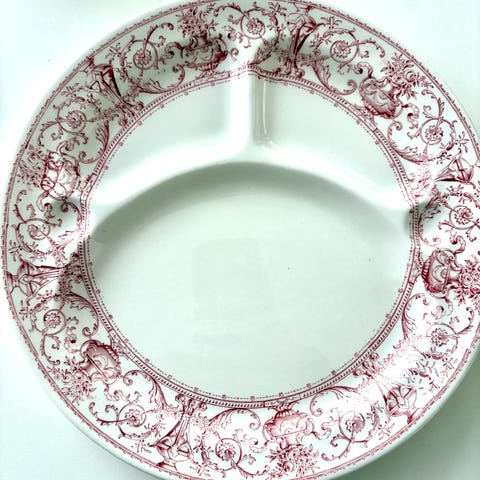 Tallerkenerne er i jernporcrlæn eller hotelporcelæn.