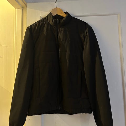 Jakke i sort farve, størrelse M til herre. Jakken er fremstillet af polyester materiale og egner sig til udendørs brug.