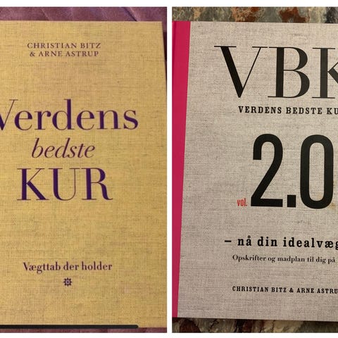 Christian Ritz & Arne Astrup Verdens bedste kur bog. Bogen omhandler vægttab og de hobbyer, der kan hjælpe med at opnå det. Vær obs. på misfarvning i bogens højre side, hvilket skyldes solens stråler på bogreol. Fra ikke ryger hjem