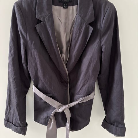 Jeans-jakke fra H&M - lang model med bælte i taljen.