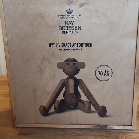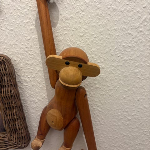 Gammel stor Kay Bojesen abe uden stempel med den flottes mørke farve som kun de helt gamle aber kan få, da de er lavet i noget andet træ en de nye som bliver lavet i dag