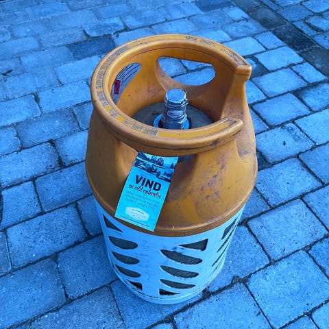 Campingaz gasflaske i blå farve fyldt af Kosan gas.