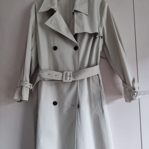 Theory Andre jakker i beige farve, passer størrelse M, lavet af bomuld. Jakken har et klassisk design med dobbeltradede knapper og bælte i taljen. Velegnet som yderbeklædning til kvinder. Helt ny med prismærker. Værdi 5200,-