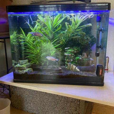 Har dette superfsh home 85 akvarium, som er brugt til fisk før i tiden. Virker som det skal og alt tilbehør medfører