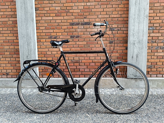 Total tip top nyrenoveret, smurt, strammet og justeret kvalitetscykel i super flot stand. Cyklen står nærmest fuldstændig som ny, stort set uden brugsspor. En cykel der er blevet passet rigtig godt på. Alt virker 100 %, og cyklen kører og fungerer som fra fabrikken, uden mislyde, defekter, slør eller skavanker nogen steder. Næsten nye kraftige punkterfri dæk + slanger. Ny frisk kæde, nye fastmonterede lygter, ny Shimano gearskifter + kabel, ny krankbiks, ny Brooks B66S lædersadel, ny kædeskærm, nyt bremsegreb + kabel, ny klokke og ny lås. Indvendige gear. Sturmey Archer rullebremse for. Praktisk, stort og robust frontlad. Højt styr. Håndbremse for og fodbremse bag. Køreklar og komplet med frontlad, klokke, støttefod, lygter, reflekser og fastmonteret ringlås med 2 nøgler. Behagelig rank, høj og flot kørestilling. Passer til høj som lav, og jeg indstiller styr og sadel så cyklen passer lige til dig. Str. 58 cm. 7 gear. Stelnr.: WBIC0046N. (Ved henvendelse angående cyklen, for hurtigere respons, sms eller ring venligst på 22 13 21 30, eller benyt messenger ved at trykke på "gå til varen" knappen).