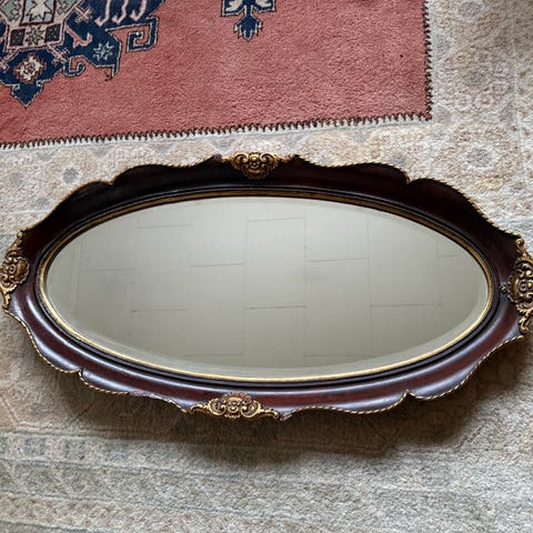 Ovalt vægspejl med ramme i træ. Rammen er fineret med ahorntræ, som er poleret med shellakpolitur, hvilket giver en varm og smuk patina. Velegnet til ophængning på væg i forskellige rum som entré, badeværelse eller stue. Måler 60x45 cm.