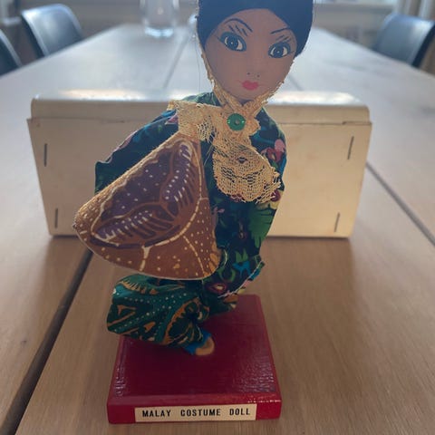 Hver dukke er unikt håndmalet og udskåret, hvilket afspejler forskellige karakterer fra forestillingerne. Højde ca. 65 - 80 cm.