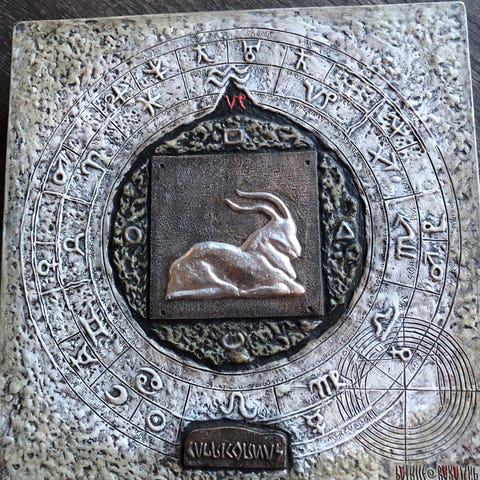 Rikki Tikki relieffer med stjernetegn; tvillinger / gemini og vædderen / aries