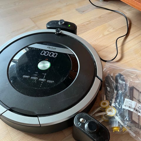 Roomba robotstøvsuger. Der er lidt slid, men fungere som den skal.