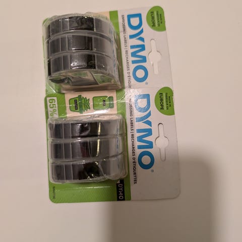 1 pakke DYMO LetraTag plastiktape – sort på hvid (pris som nye 47kr/pakke)