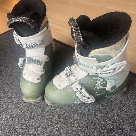 Salomon skistøvler med en størrelse på 20-20.5 (str sko 32-33) og længde på 246 mm. Flex 60 og rigtig fin junior støvle. Støvlerne har flere spænder for justering og fastgørelse.