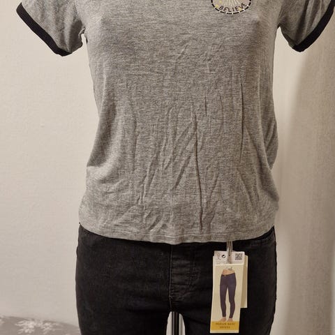 Pull&Bear T-shirt i størrelse M til kvinder. T-shirten er grå og lavet af bomuld. Den har en rund halsudskæring og kortærmet design.