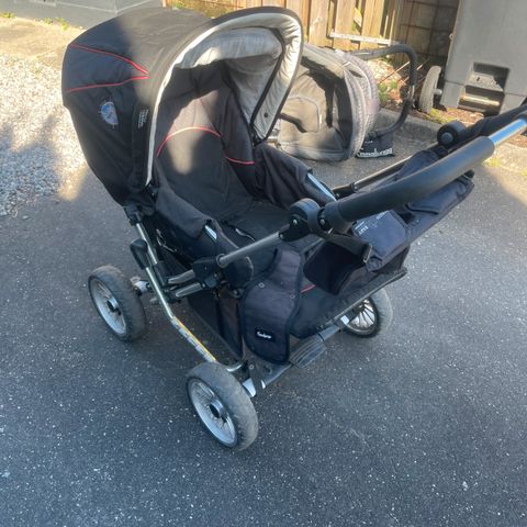Emmaljunga kombivogn, den er brugt til 2 børn og er i stand herefter. Det er ikke original sele der medfølger. Håndtaget mangler en knap, så den er lidt vanskelig at indstille. Trænger til at blive rengjort. Ellers fungere den godt og vi har været meget glade for modellen. Der er monteret et rullebræt, så et barn kan stå.