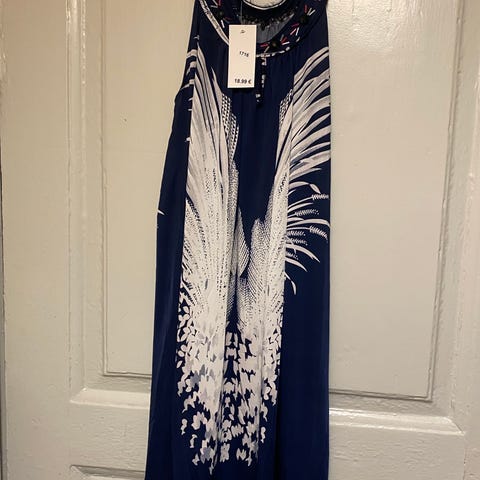 Vila sommerkjole i størrelse 40 til kvinder. Kjolen er blå og lavet af polyester. Designet med korte ærmer og knaplukning foran. Velegnet til sommerbrug.