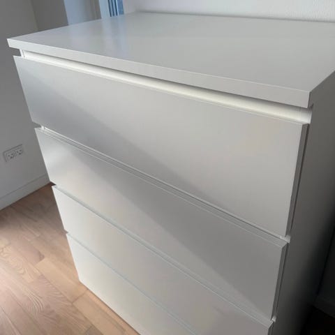 Sælger min Ikea Malm Kommode grundet flytning. Ikea SKUBB-kasser til skuffeinddeling medfølger efter ønske.