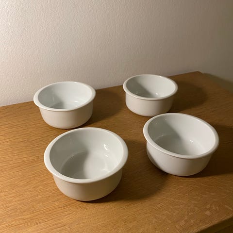 Eva Solo sæt bestående af store og små skåle i hvidt porcelæn. Sættet indeholder 2 store og 1 lille Eva Solo skål med hank, 1 stor, 2 mellem og 5 små Eva Trio skåle, 2 store Eva Trio serveringsfade, 1 Eva Trio flødekande 1 dl, 1 Pillivuyt sovseskål