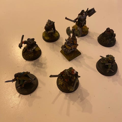 Games Workshop Warhammer Fantasy Battle miniaturefigurer i forskellige modeller og farver. Miniaturerne er håndmalede og monteret på runde baser. Egnet til brug i Warhammer Fantasy Battle spil eller som samlerobjekter.