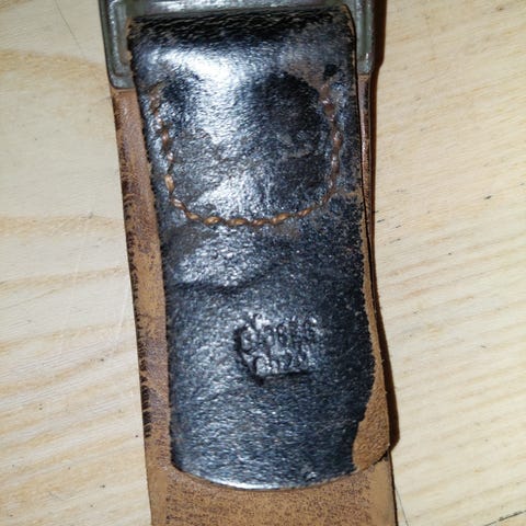 Sælger dette tyske wehrmacht læderbælte. Det er i brugt stand ig syningen på tungen er gået i den ene side, derfra den lave pris, dog kan man sagtens bruge det på gine eller mannequin uden problemer.