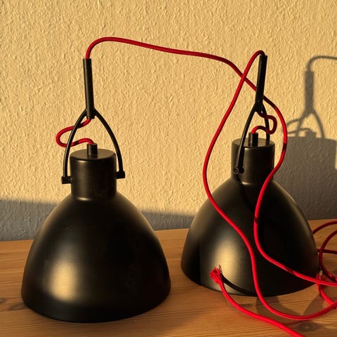 Sorte pendler / loftslamper med sort stofledning (kan udskiftes).