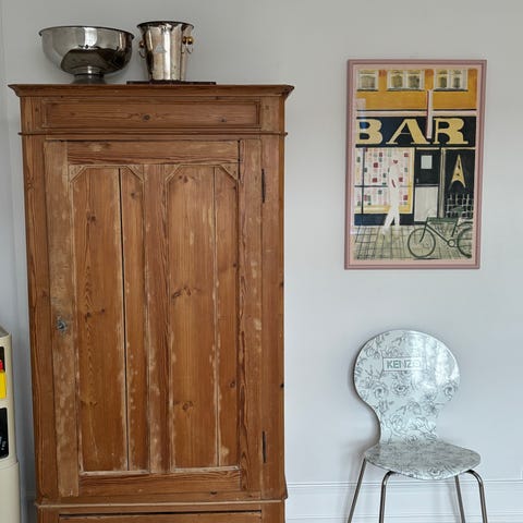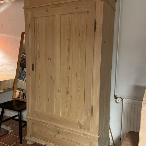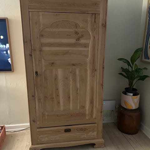 Grønt Karlekammerskab med plads til en masse opbevaring. Er malet for et par år siden og har fået nye “fødder” og hylder isat. Indhold medfølger selvfølgelig ikke og skriv hvis jeg skal tømme det og sende billede for bedre at kunne se det. Bæres selv ud af huset ved afhentning.