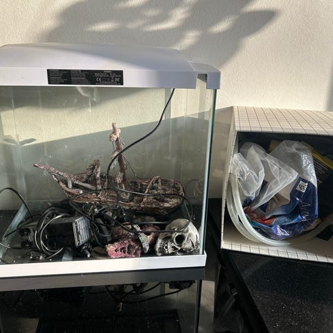 Akvarium i glas / bur med tilbehør