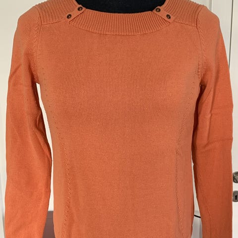 Super flot bluse i økologisk uld. Blå og hvide striber.
