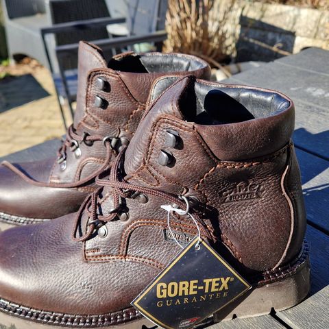Le Chameau herre støvler i str. 44 med brun nubuck le. Støvlerne har lynlås bagpå og elastiske paneler på ydersiden. Indvendigt foret med Outlast materiale, som kan regulere temperaturen. Sål i sort gummi.