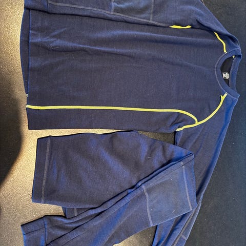 Helly Hansen undertøjssæt til børn i størrelse 140. Sættet er unisex og lavet af merinould 57% og polyester 43%. Farven på undertøjet er udgrænse med orange striber. Materialet bidrager til varme og komfort ved brug.