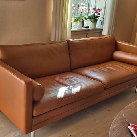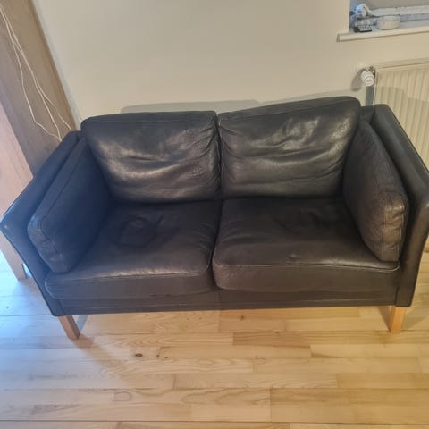 2 styk Mogens Hansen MH322 2,5 personers lædersofaer. Brugt men i fin stand og med fin patina. Original kvittering haves. B: 180, D: 81, H: 65