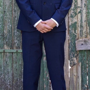 Rigtig flot mørkeblå jakkesæt, jakke og bukser.