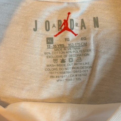 Nike Jordan T-shirt i størrelse S til herre. T-shirten er hvid og fremstillet i bomuld. Den har grafisk print med Jordan-motiv på front og ryg.