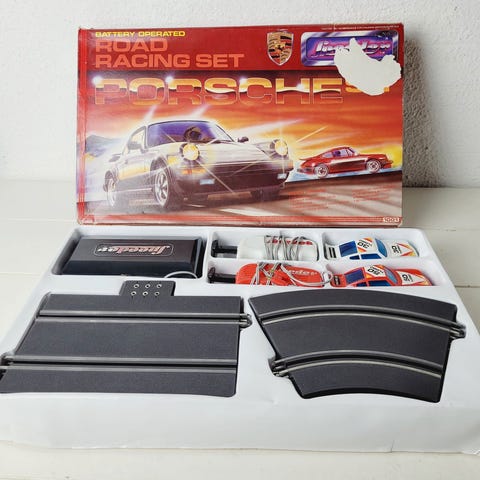 SEGA Race Leader arkadespil med to spillere. Spillet har to separate kontrolenheder og skærme, designet til racerkørsel. Farver og design følger klassisk arkadestil.