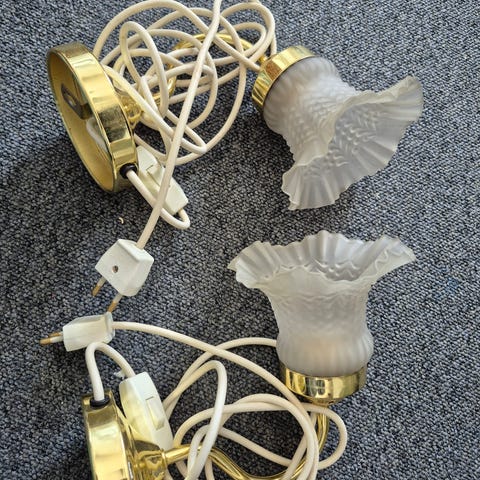 Andet, Lampetter 2 stk i retrodesign sort med "guld". Lampetterne har pærer med , samt plisselampeskærme og stik klar til brug.