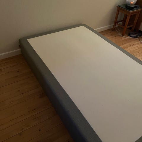 Boxmadras med sengegavl og Kvalitets Wellpur topmadras fra Jysk