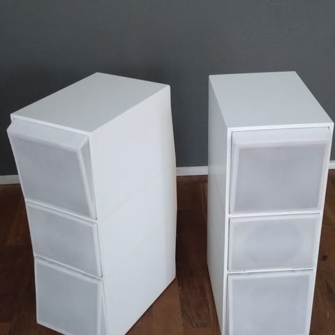 Nysretaurerede cx-100 i hvid sælges. Spiller super godt. Kan sendes. Sælges med org. fronter eller specialfronter for en merpris på 400. Højtalerne er nogle årtier gamle - men spiller super godt. Ny højtalerkanter har de naturligvis fået.