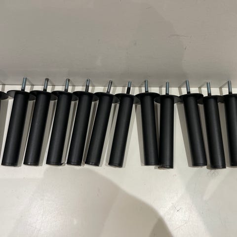 10 cm høje. 2 sæt af 4 ben til reoler, skabe og kommoder.