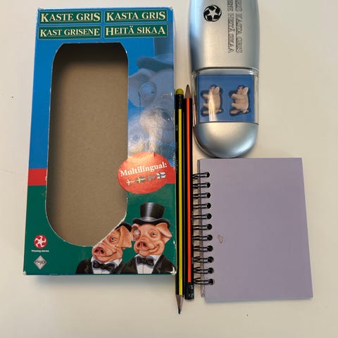Komplet og i pæn stand. Bunden er tapet i 2 hjørner, låget er tapet i det ene hjørne