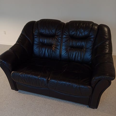 Sofa sofasæt i sort læder med lænestol til 6 personer