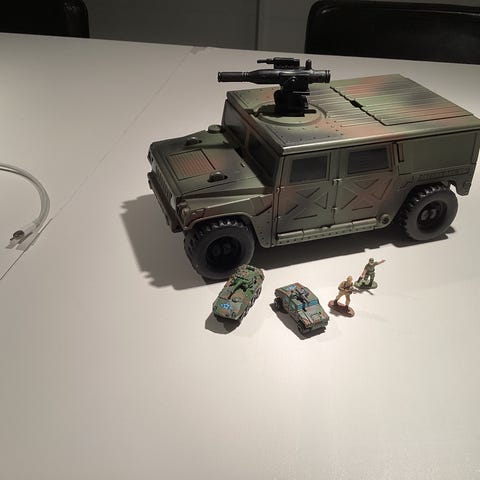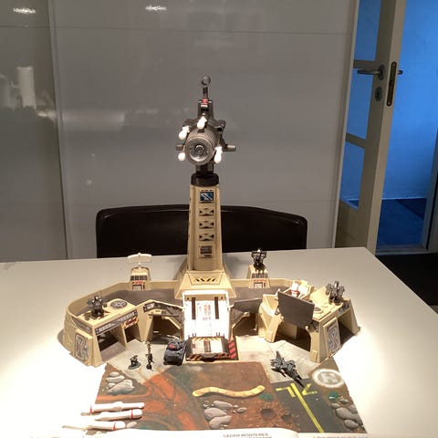 Micromachines Playset fra 1993. Transportabel tank med transporthåndtag, kan åbnes samt opbevare tilbehøret. Raket affyringsrampe med raketter der kan affyres, bro der kan springes i luften, kran, nødhjælpsstation og kommando bro. Toppen kan rotere og tages af og sættes sammen med sættet. Obs at toppen tages af ved at skubbe den lidt tilbage først, se foto 8. Der medfølger 3 biler, en tank og tre mænd. En port i siden mangler, se foto 1